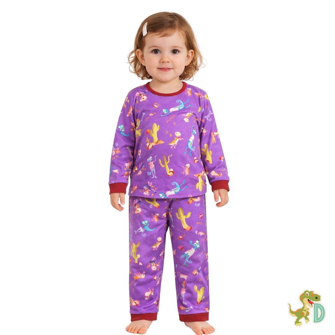 O Pijama Infantil Dinococois Manga Longa foi criado para garantir conforto, aconchego e diversão na hora de dormir. Com estampa alegre e criativa em fundo roxo, repleta de personagens divertidos e elementos lúdicos, o pijama torna a rotina noturna mais leve e encantadora para as crianças.