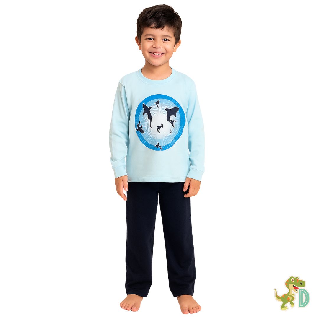 Feito em tecido super macio e confortável, ele traz uma estampa cheia de tubarões em movimento e o melhor: os detalhes brilham no escuro, deixando a noite dos pequenos ainda mais divertida! ?