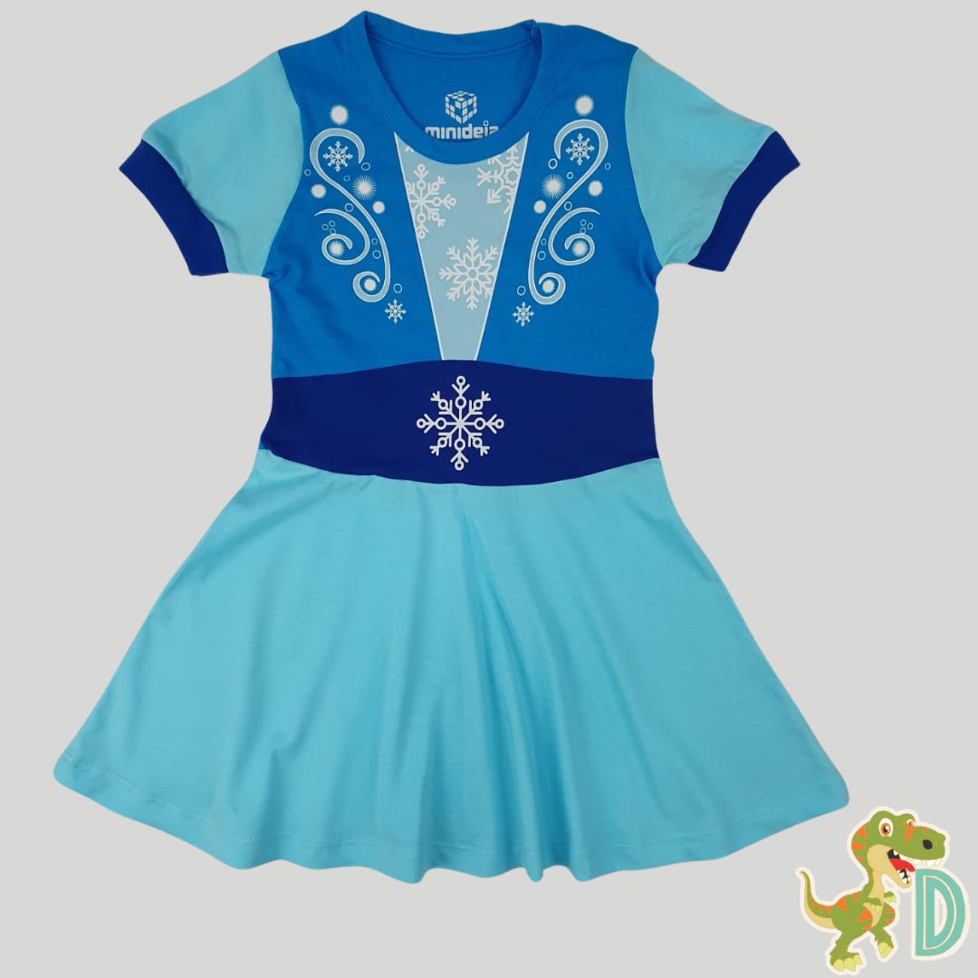 Nosso Vestido Elsa frozen é maravilhoso, estampa frontal linda, modelo da manga curta.
