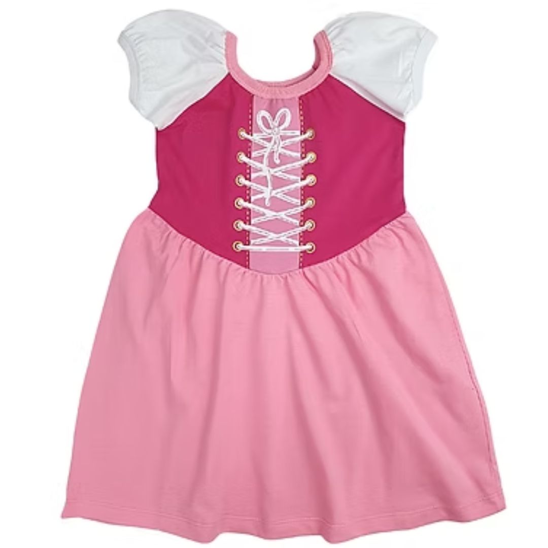 Nosso Vestido Fantasia Princesa Aurora é maravilhoso, estampa frontal muito linda, com brilho liindo e delicado na cor dourado.