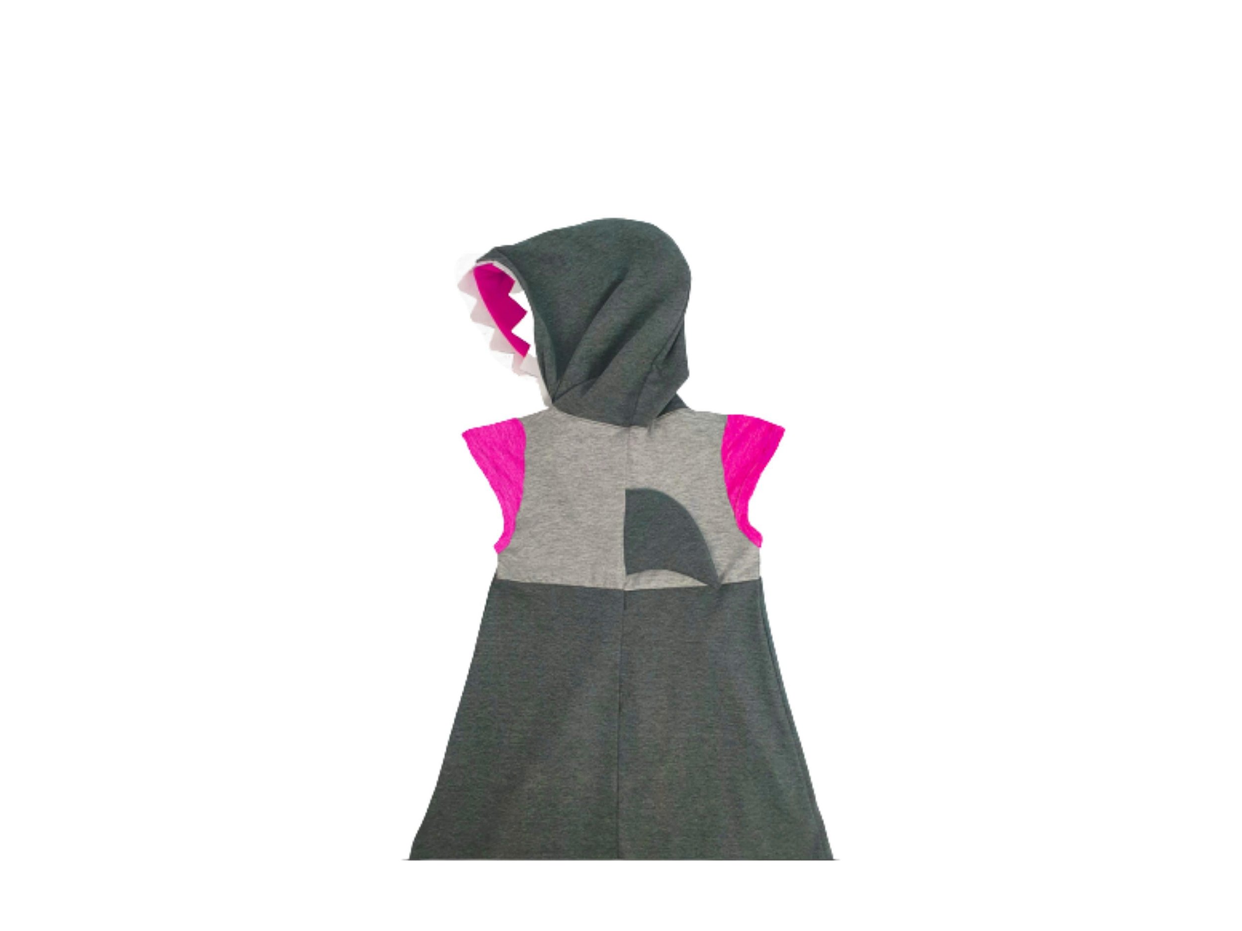 VestidoTubarão, com capuz todo forrado com dentes super afiados (brincadeirinha) mas são muito divertidos e linda barbatana na parte de trás das costas.